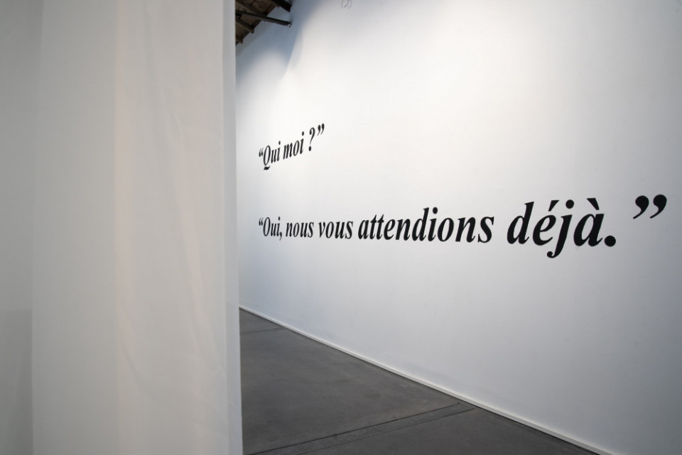 “AH! OH! When one enters the gallery space two large words are immediately visible: the two interjections, with exclamation marks, project sound in the space when they are read. The presence of these two large words help to activate the installation at large”.8
