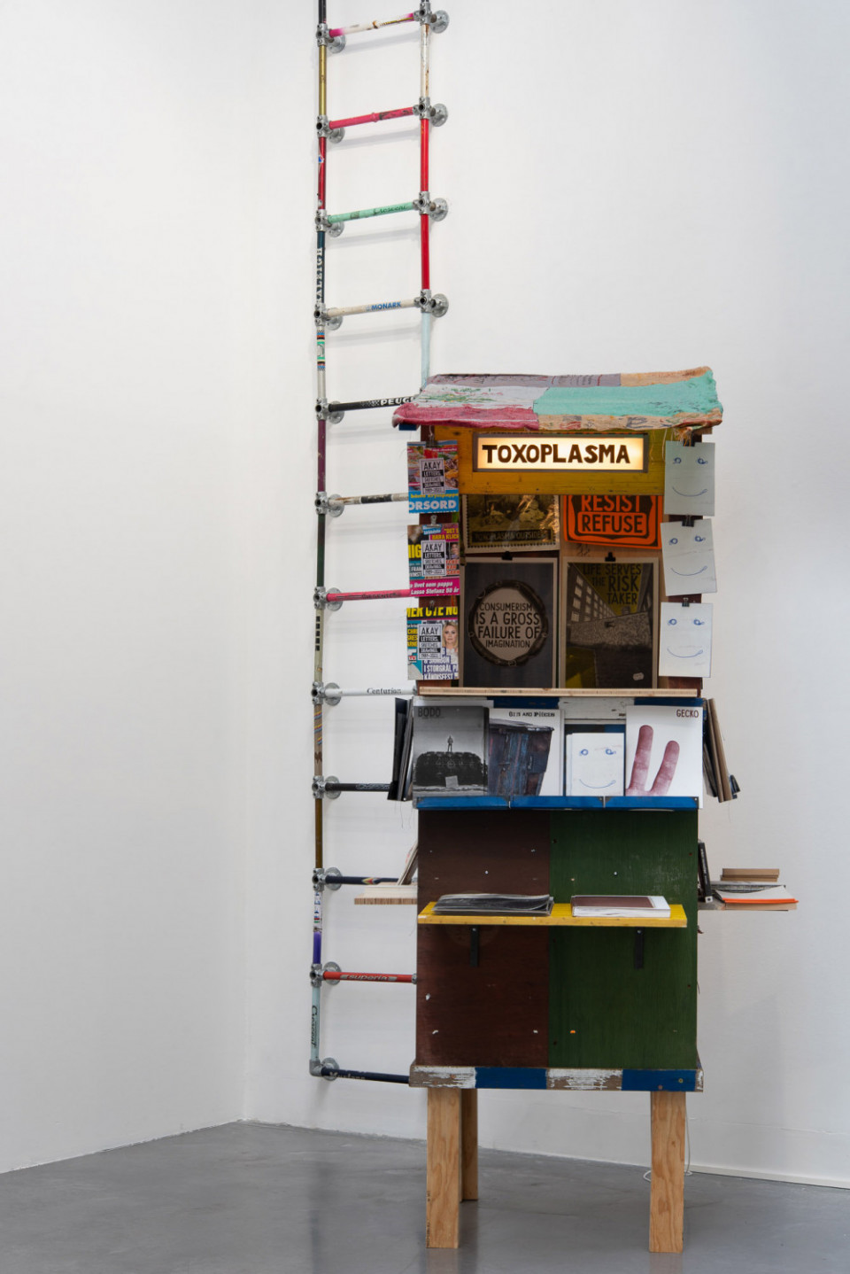 The public space of an art center, understood as a laboratory for experimentation, constitutes another kind of playground for the duo, who are also used to the “exhibition medium”. Here, their work can take the form of in situ installations, a collection of gestures and actions performed during previous “dérives9”, traces of which are preserved in videos or photographs. Their works also include collages, interactive sculptures, constructions and scenographies, most of them based on found or salvaged materials. These visual creations “cobbled together” from their finds reflect not only an artistic posture, but also an art of making, as the artists in their daily lives also live by recycling and reactivating the remnants of contemporary permanent overproduction.