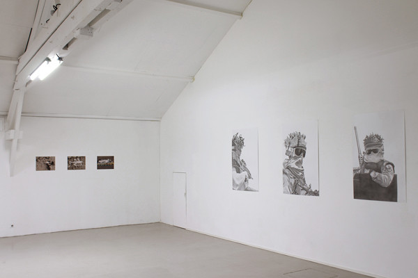 Ainsi, l’absence d’image du sujet premier chez Marie Voignier (l’animal fabuleux dans L’Hypothèse du Mokéle-Mbembé, le narrateur dans Les Immobiles ou encore l’accusé et son procès dans Hearing the Shape of a Drum), le recours aux contraintes, aux sources et filtres intermédiaires chez Fabienne Ballandras (maquettes, description d’un tiers ou images scientifiques) mettent à distance la représentation du référent, voire en constatent l’inaccessibilité ou l’impossibilité. Afin de souligner mais aussi de pallier cette déficience, les deux artistes s’en remettent fréquemment à la description, orale, visuelle ou écrite : dans les œuvres de Marie Voignier, les journalistes décrivent à la réalisatrice ou aux spectateurs ce qui n’a pas lieu (Hearing the Shape of a Drum), un auteur invisible commente page après page les images de son livre sur les safaris au fusil dans l’Afrique des années 50 et 60 (Les Immobiles), des descriptions écrites s’intercalent entre les prises de vue sous forme de cartons dans Tourisme International. Quant aux dessins de Fabienne Ballandras, la série 67P/T-G consacrée à la comète Tchouri se fonde sur les quelques images scientifiques existantes ; Coucou les enfants est issue d’une série de photographies ramenées d’Afghanistan par un soldat tandis que Au nord ouest de l’image a été réalisé en quelque sorte à l’aveugle, à partir de descriptions écrites de collégiens de l’agglomération de Montbéliard.