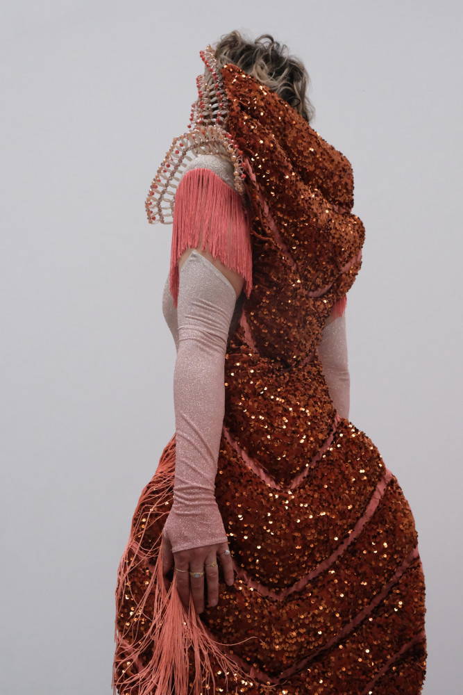« I’m currently researching costume for the characters in my mythology. I see this residency as the logical continuation of a path I started recently with the creation of headdresses and masks made in Benin during a research residency [in 2022]. […] This experience also broadened my field of research into the aspects and symbols of the headdresses worn by divinities during voodoo ceremonies. In this way, the residency would enable me to link my current research, especially on costume, performance and the technique taught at the lycée »*.