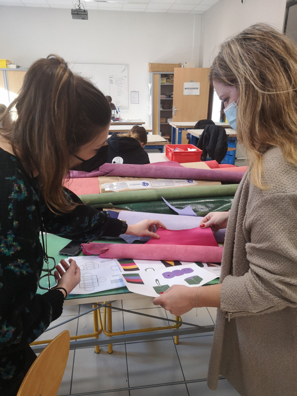 The artist Chloé Serre (born in Saint Étienne in 1986 and living in Paris) has been invited to share her artistic practice with students and teachers at the lycée during the month of March 2022, by taking up residence inside of the leather goods workshops. The artist’s sculpture and performance work revolve around the ritual elements inherent in social interaction. Together they will exchange technical know-how and artistic ideas in order to produce the Duplicata project, which will question the status of the bag as an object with a sign effect, in other words as an economic, social and/or professional marker.