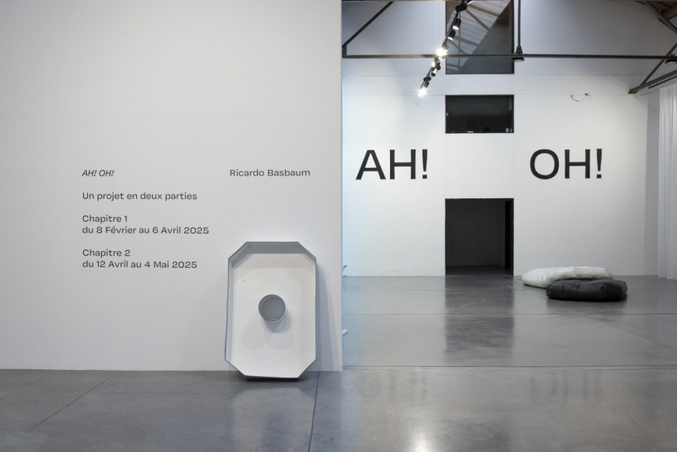 Pour Montbéliard, Ricardo Basbaum a conçu un projet artistique global qui se déroule selon deux temporalités différentes. Cette nouvelle proposition contient un certain nombre d’éléments déjà présents dans son travail ces dernières années, tels que l’emploi du texte dans l’espace comme stratégie d’incitation à l’oralité, les répétitions visuelles, l’implantation d’éléments sculpturaux structurant l’espace pour inviter à la participation. AH! OH! est d’abord un espace performatif collaboratif, puis une exposition.