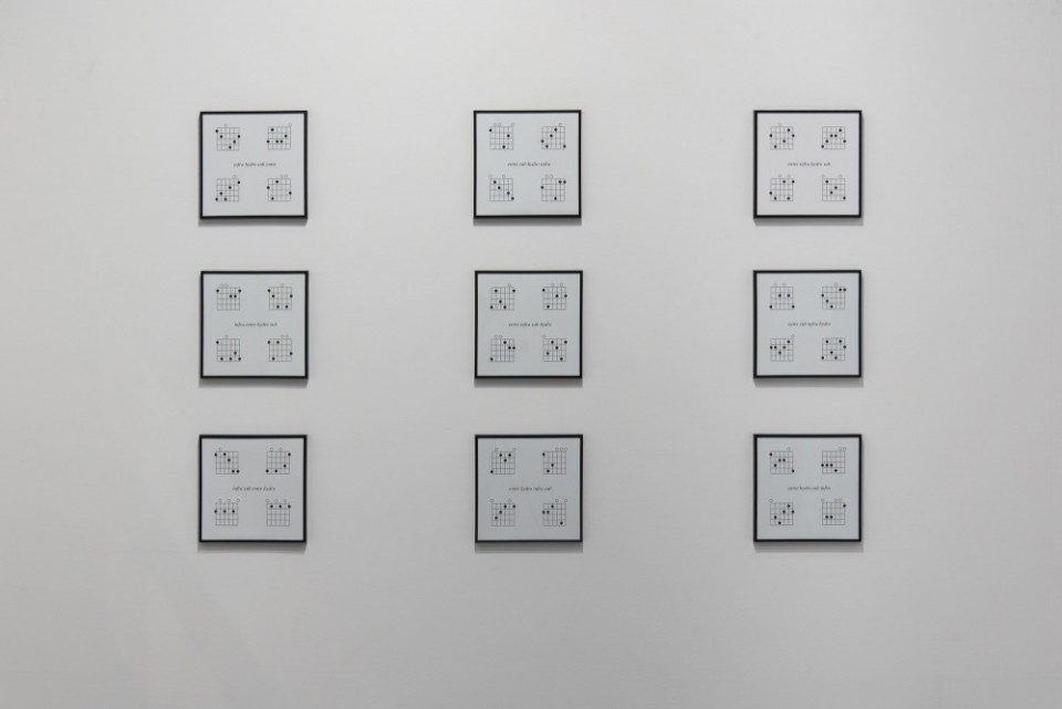 Depuis la fin des années 1980, il a créé un vocabulaire spécifique pour son travail, qu’il applique d’une manière particulière à chaque nouveau projet. Il s’agit de NBP [Nouvelles Bases pour la Personnalité], qui explore toute la complexité de la subjectivité5. Le début de ce projet coïncide avec la fin de la dictature militaire au Brésil et la montée de la globalisation. Constitués de mots et de lignes, ses diagrammes muraux peuvent alors s’envisager comme des dessins, des poèmes visuels qui convoquent tout à la fois des images, des actions et des relations. Le diagramme est un connecteur, un médiateur et un activateur entre l’œuvre, l’espace, et la subjectivité du public. NBP est activé également à travers la production d’installations, de vidéos, de performances sonores ou encore d’interventions urbaines.