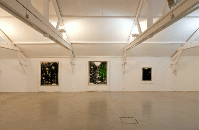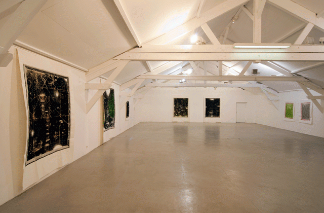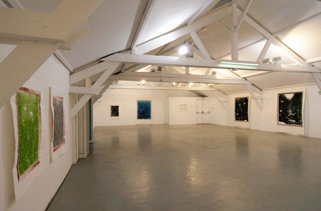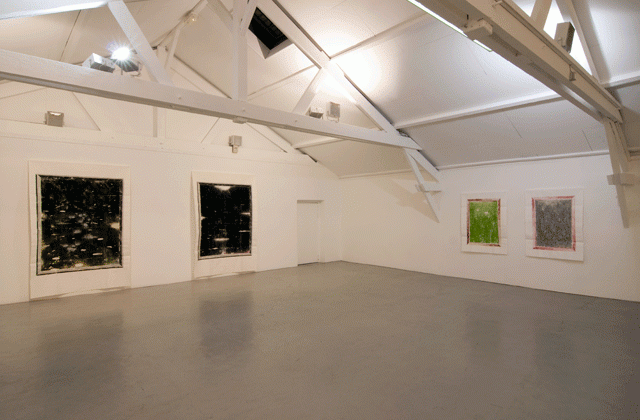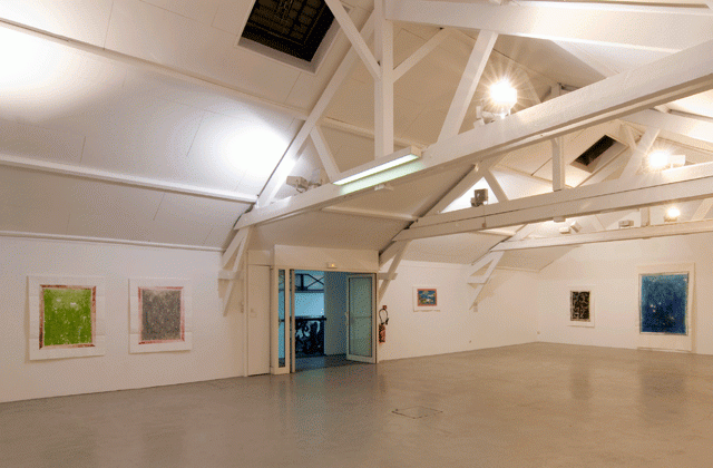 Dans son petit atelier il se consacre à peindre sur des papiers qu’il fixe au mur et sur lesquels il a tracé un cadre qui évoque délibérément celui du tableau. Il peint un « paysage » qui campe à la lisière de son apparition ou de sa dissolution dans la touche colorée. Il nourrit sa peinture de ce que lui suggère son « petit carré de jardin » : telle portion du sol pelée par les jeux des enfants, des flaques d’eau après le passage de la pluie, la façon dont la lumière du jour et de la nuit donne consistance aux choses, et recompose leur agencement.