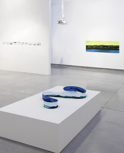 Les peintures de Mikko Paakkola font surgir des images évoquant la nature, mais avec une économie extrême de moyens : ici un dégradé du blanc au gris sur un support plastique configure un univers entre la tombée ou la levée du jour. La référence au paysage naît de la composition basée sur une ligne qui fait horizon en même temps qu’elle divise l’œuvre en deux plans. La ligne de fracture centrale marque un horizon et une symétrie. Immatérielle, elle accentue la sensation d’éloignement à l’infini. On campe sur une ligne de crête où le réel se dissout dans le pictural et inversement. Mikko Paakkola est né en 1961, il vit à Turku en Finlande.