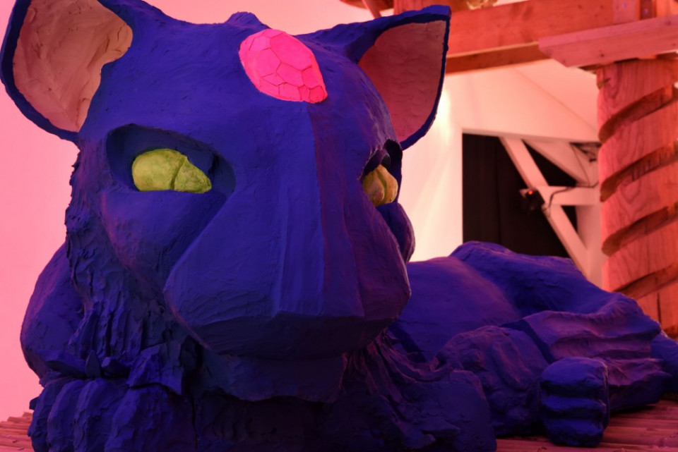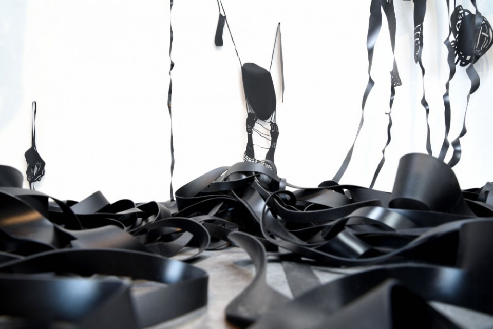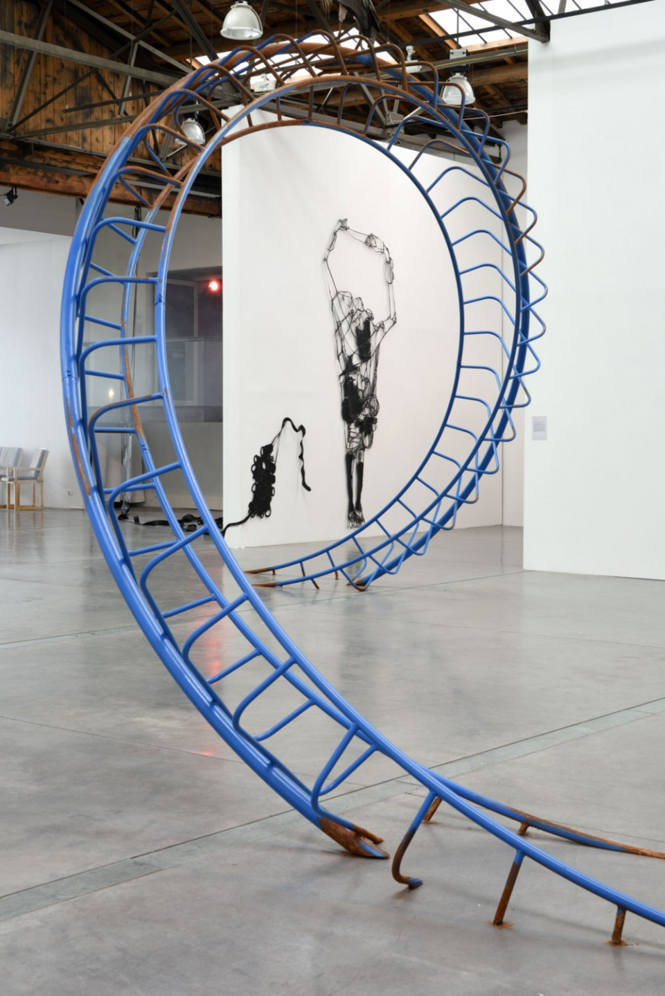 Mais le rassemblement de ces cinq artistes est surtout induit par une accointance entre les pratiques artistiques en présence et la configuration généreuse des espaces d’expositions du 19, Crac les accueillant. La diversité des démarches artistiques se rencontre autour d’une libéralité, voire d’une exubérance des pratiques plastiques : sculpture dessin de Maxime Lamarche inspirée des parcs d’attraction tombés en désuétude dans l’ère post-industrielle, démesure baroque des dessins découpés dans l’espace de Nina Joanna Bergold, ballet frénétique des objets animés par les films de Pia Maria Martin, environnement immersif et syncrétique saturé d’objets, d’images, de sculptures et de lumières de Jean-Sébastien Tacher, humour et impertinence féministes des photographies des performances débridées de Justyna Koeke.