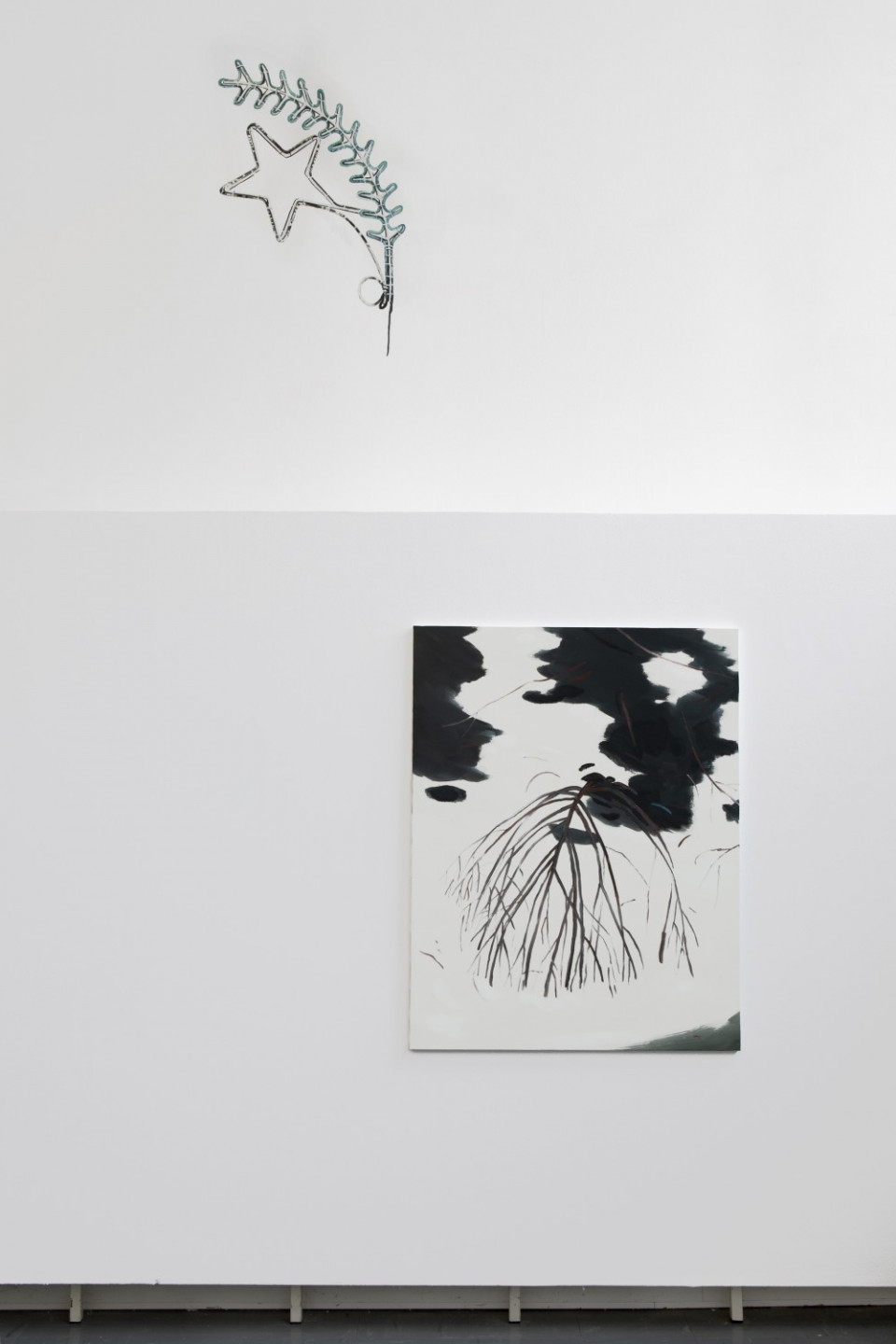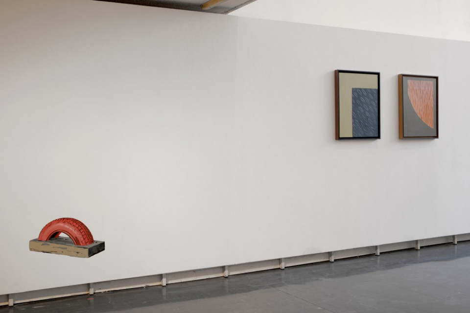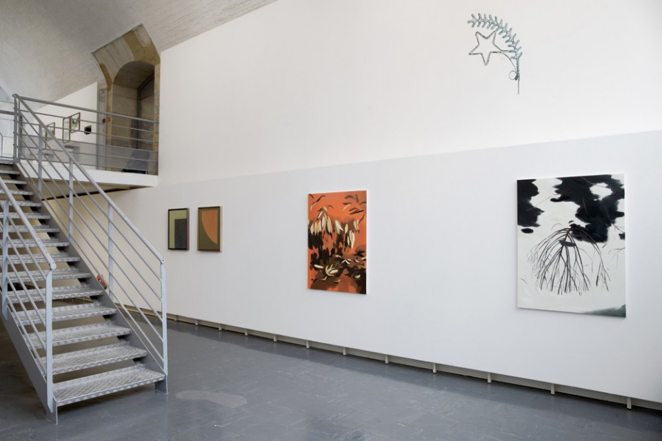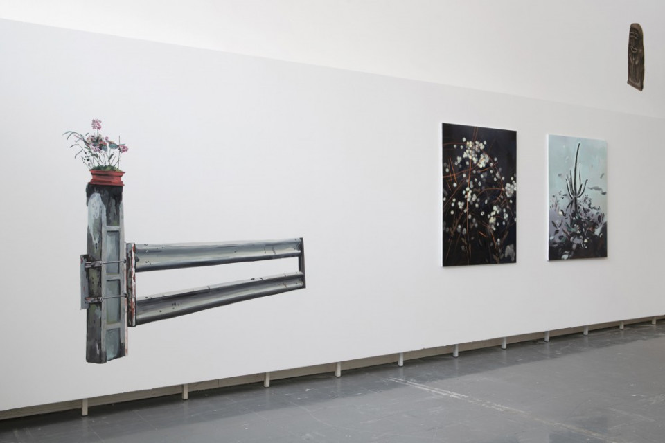 Pour autant, ma peinture ne cherche pas à reproduire le cadrage ou l’instantanéité de l’image photographique, celle-ci me servant seulement à réactiver le contexte dans lequel elle a été prise, me rappeler un motif, une impression. Les ensembles de toiles qui en résultent immergent le visiteur dans une couleur dominante, un matériau, une saison, ou encore un sentiment comme récemment dans l’exposition Parpaing/Chagrin. Sur grand format, des sujets sculpturaux sont réagencés par affinité dans des décors naturels. Parmi eux, des tableaux abstraits de taille plus réduite viennent créer des correspondances de formes et de couleurs. La signalétique de PME y côtoie des fresques de HLM des années 70 et des sculptures de jardin évoquant des rites païens.