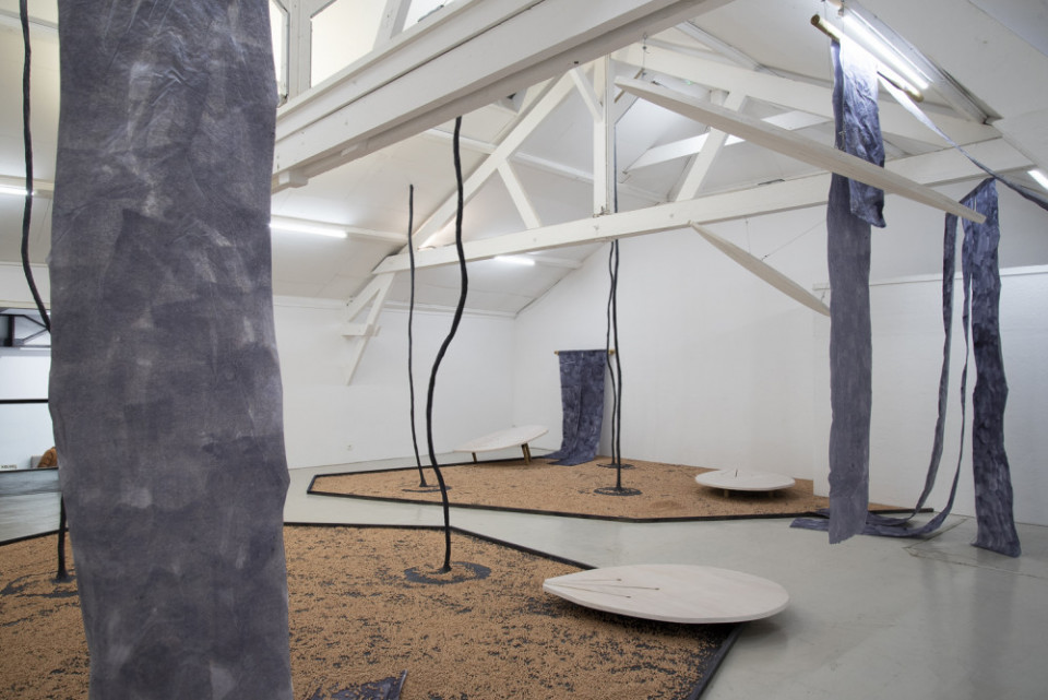À l’étage du centre d’art, Ju Hyun Lee fait appel à la sagesse populaire avec son titre proverbial, Pas de cerise sans noyau, qui convoque le processus de production dans son ensemble, au-delà du fruit : à partir de la graine et en lien direct avec le sol et son environnement. Attachée tout particulièrement aux plantes, l’artiste privilégie depuis plusieurs années les projets au long cours lui permettant de développer des processus artistiques partagés. Ainsi, elle invite des participant·e·s à prendre part à la réalisation et l’entretien de sculptures, d’installations, d’expériences esthétiques et culinaires en lien avec les cycles de la nature. Diplômée en management de technologie en Corée du Sud, d’où elle est originaire, Ju Hyun Lee a ensuite étudié les arts visuels à l’ENSBA de Lyon puis complété sa pratique plastique par un brevet professionnel de maraîchage biologique en 2019 en Bourgogne-Franche-Comté où elle réside.