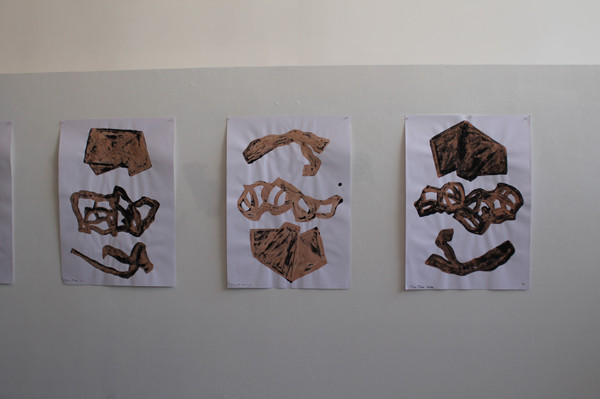À partir de certains objets récurrents (pince à linge) il constitue un alphabet formel avec lequel se font et se défont des identités (masculin/féminin), des significations (signifié/signifiant), et des écritures (signes/lettres).