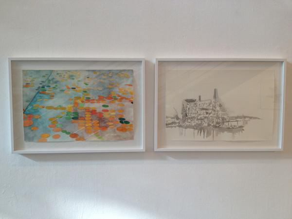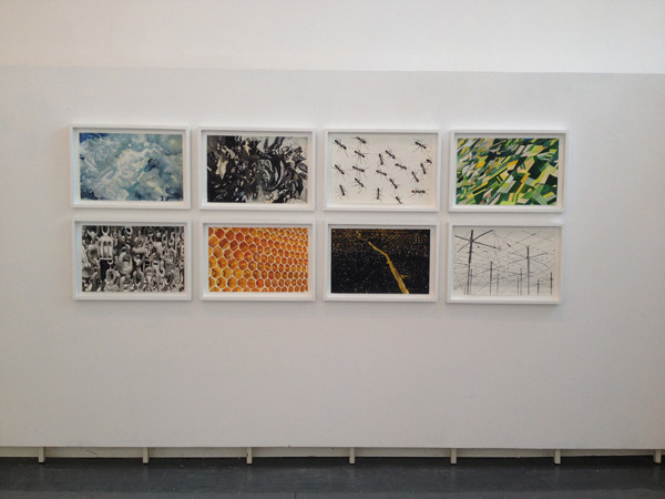 La plupart des aquarelles qui composent la série sont inspirées de photographies prises par l’artiste ou d’images trouvées dans les médias ou des livres. Ainsi, des paysages ruraux vus du ciel, des gros plans de ruches d’abeilles, des bâtiments contemporains, des pipelines, ou encore des structures qui témoignent de l’évolution technologique sont autant d’entrées en matière qui sont proposées pour aborder la thématique de l’Empire. Autant de lignes, de grilles qui révèlent des systèmes d’organisations et de communications de l’ensemble des êtres et des choses qui composent notre planète. Une sorte d’inventaire impossible qui questionne la position de chacun dans un vaste ensemble insaisissable. Les dessins s’avèrent être d’une actualité poignante. Le monde contemporain globalisé, où l’économie comme l’information sont régis au niveau mondial, dépersonnalise le système qui semble devenir une entité fictionnelle, incontrôlable, inaccessible. Dans Unreachable Empires, - qu’il s’agisse de la quantité des figures composant certains dessins ou qu’il s’agisse du rapport sériel avec lequel est abordé la production-, le nombre est corollaire d’une machinerie abstraite et colossale.