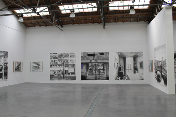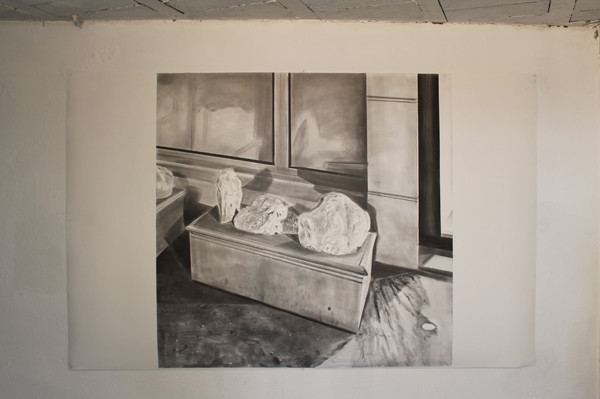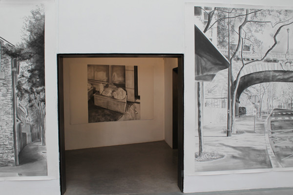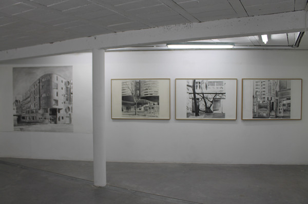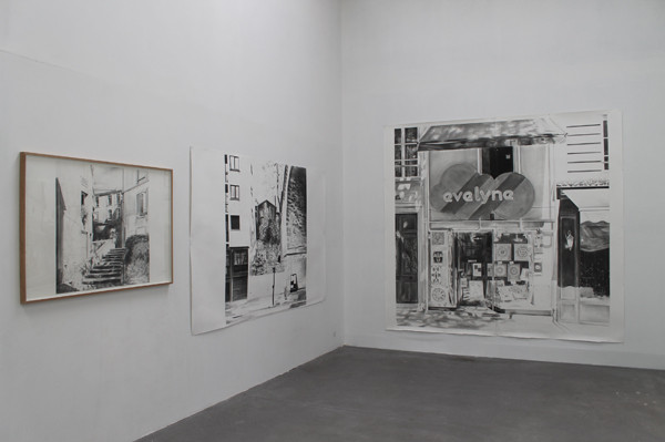 De par son infinité de valeurs de gris, le dessin permet aussi de rappeler la vision photographique. Des contrastes qui sont un écart par rapport à la perception quotidienne. Mes tableaux et mes dessins s’appuient sur un reportage photographique. L’enregistrement est démonté, remonté et interprété à l’atelier.
