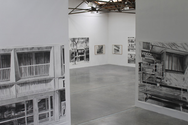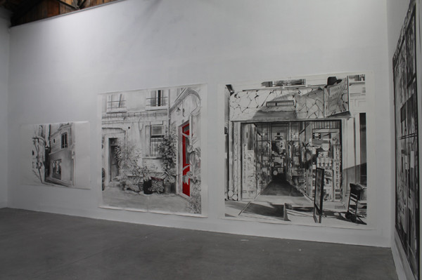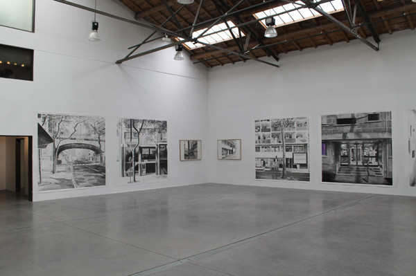 Le sujet de la peinture et des dessins d’Yves Bélorgey est depuis toujours l’habitat collectif. La soixantaine de « dessins photographiques » qui constituent son exposition pour le 19, Crac, proposent cette fois une dense succession de points de vue depuis, et sur, la seule longue rue des Pyrénées, une des plus anciennes rocades parisiennes. Le parcours restitué, limitrophe des premières banlieues, suggère le continuum spatial de l’habitat, collectif lui aussi. Cette tentative de faire pénétrer la rue des Pyrénées au 19 relève du désir d’inscrire l’espace commun comme sujet, au cœur de la pratique artistique, mais aussi de « retourner » l’enveloppe intérieure du centre d’art pour en souligner aussi la vocation première d’espace public.