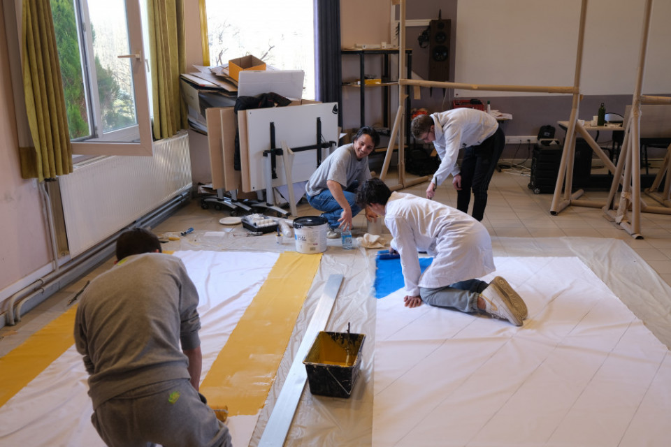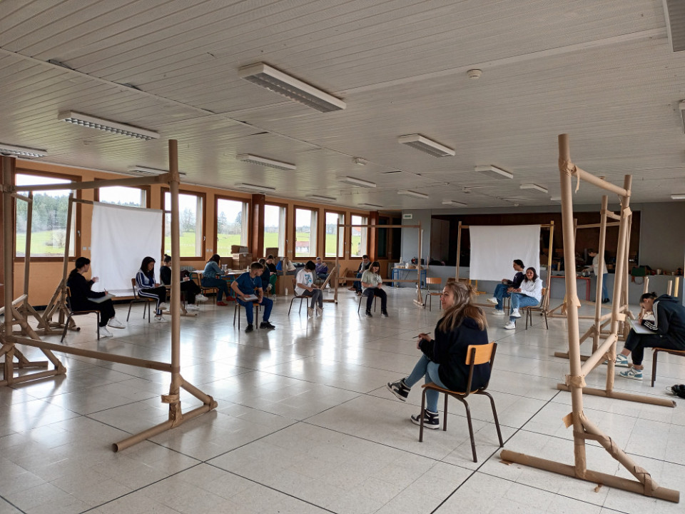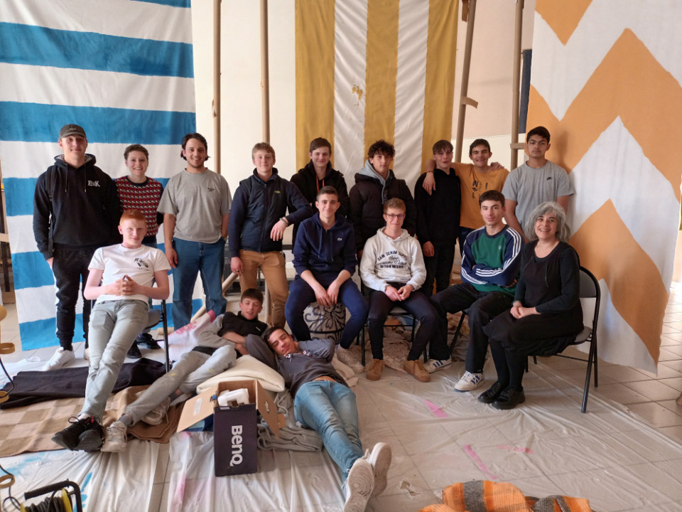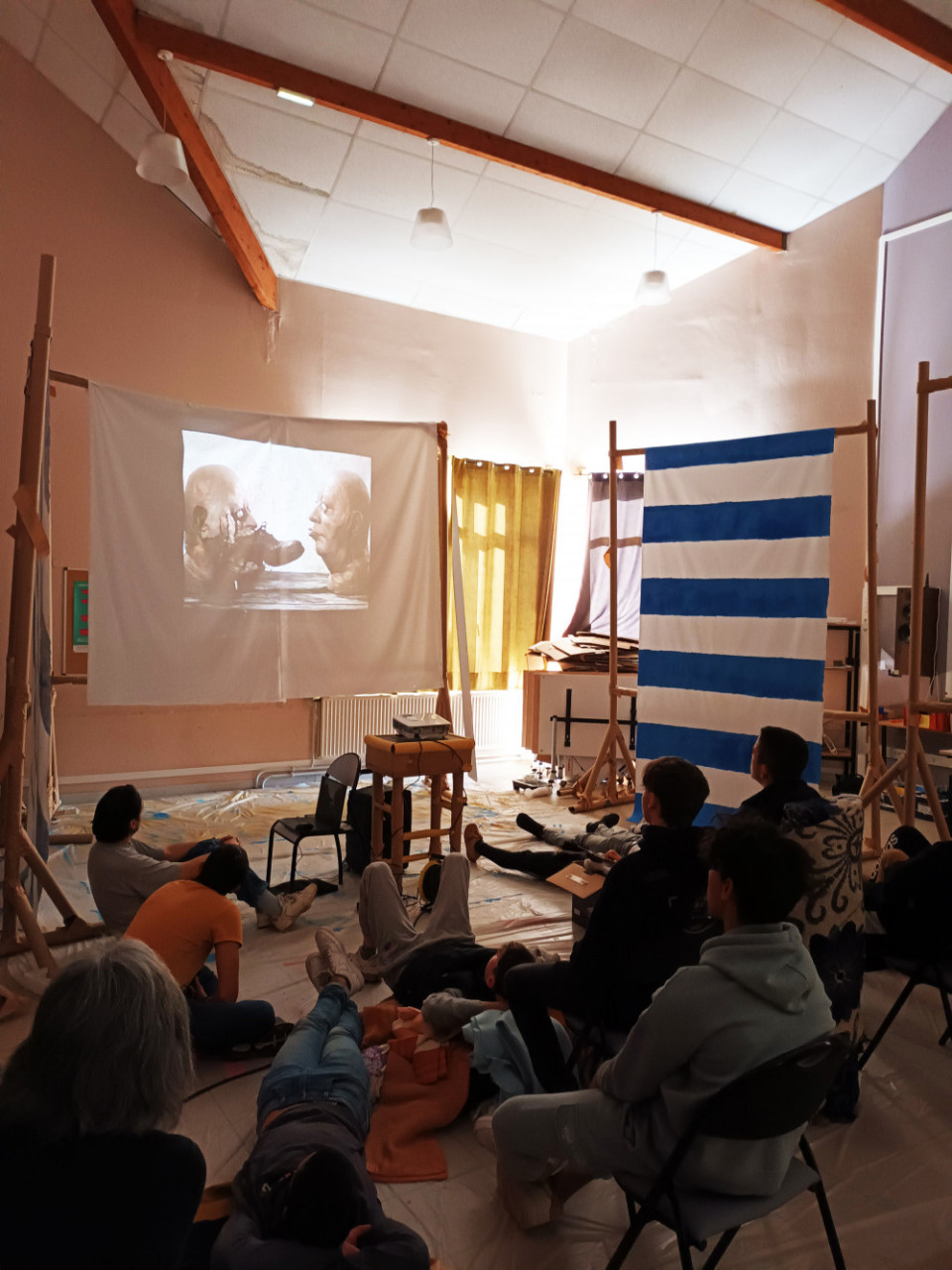 Au cours de sa résidence Artistes plasticiens au lycée, Alexandre Caretti a utilisé le jeu comme un espace d’expérimentation et de co-construction. Pendant une semaine, il a invité les élèves et les enseignantes à participer à une aventure collective visant à imaginer et à construire une salle de projection, un lieu de vie collectif idéal dans leur lycée. Ce projet a servi de matrice pour la co-production d’œuvres, de mobilier, de scénographies mais aussi à des temps d’ateliers d’écriture.